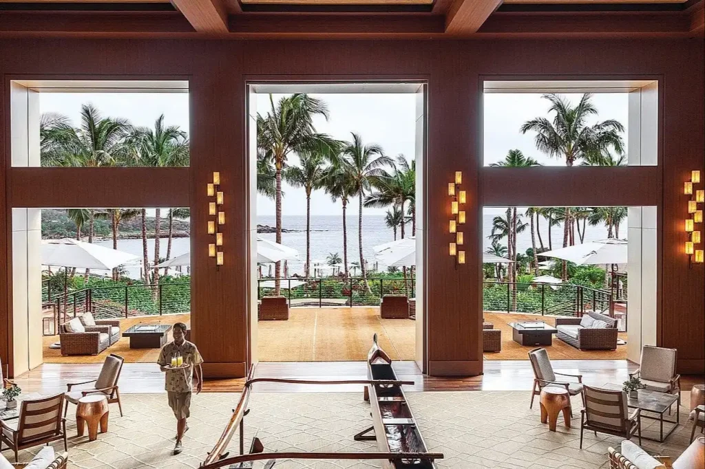 The Four Seasons Lanai sits above a perfect crescent of golden sand, where every terrace, dining patio, and open-air lounge faces the Pacific. Days here unfold at your own pace: sail along the coast, play a round on the Jack Nicklaus–designed golf course, or simply drift between the lagoon-style pool and the blooming gardens. Families will appreciate the kids’ club, while adults can slip away to the full-service spa or join a guided stargazing session at the resort’s on-site observatory.
